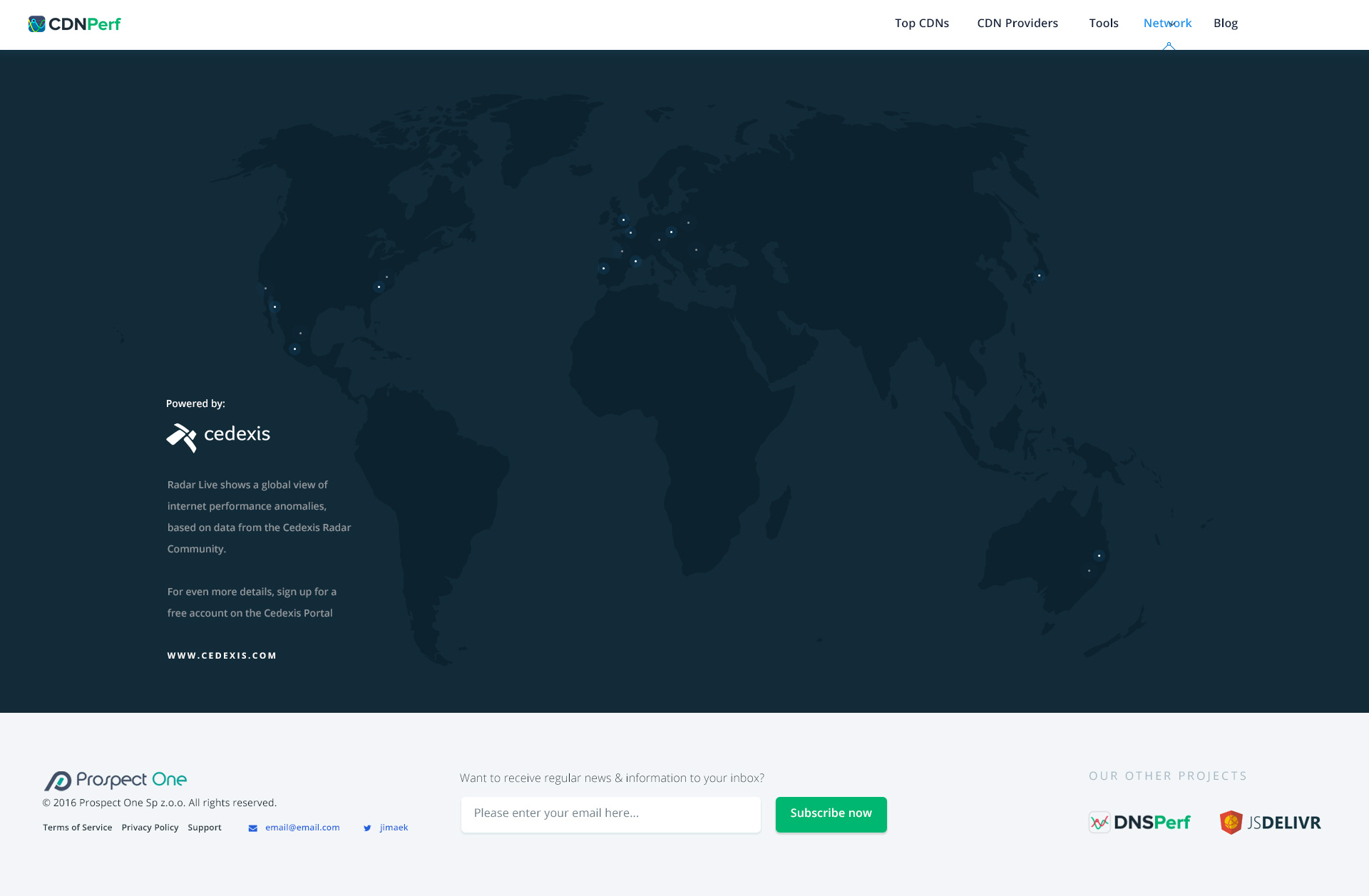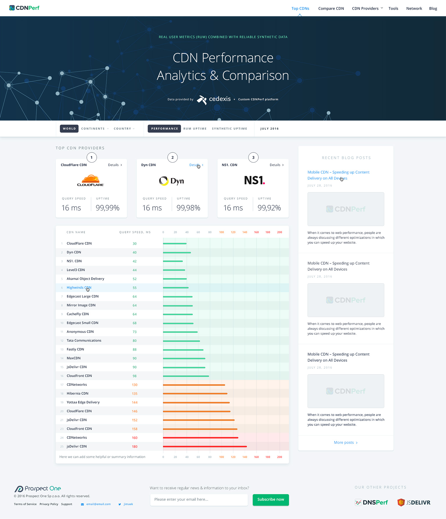 CDNPerf is a web service owned and developed by Prospect One. We made the UI simple to use yet powerful enough to work with complex analytics.