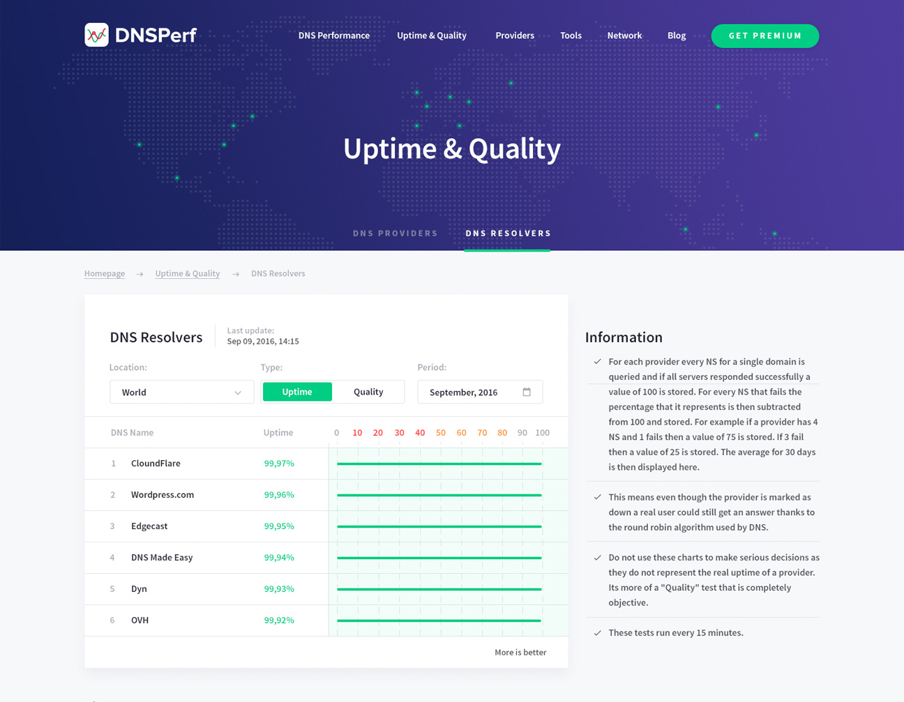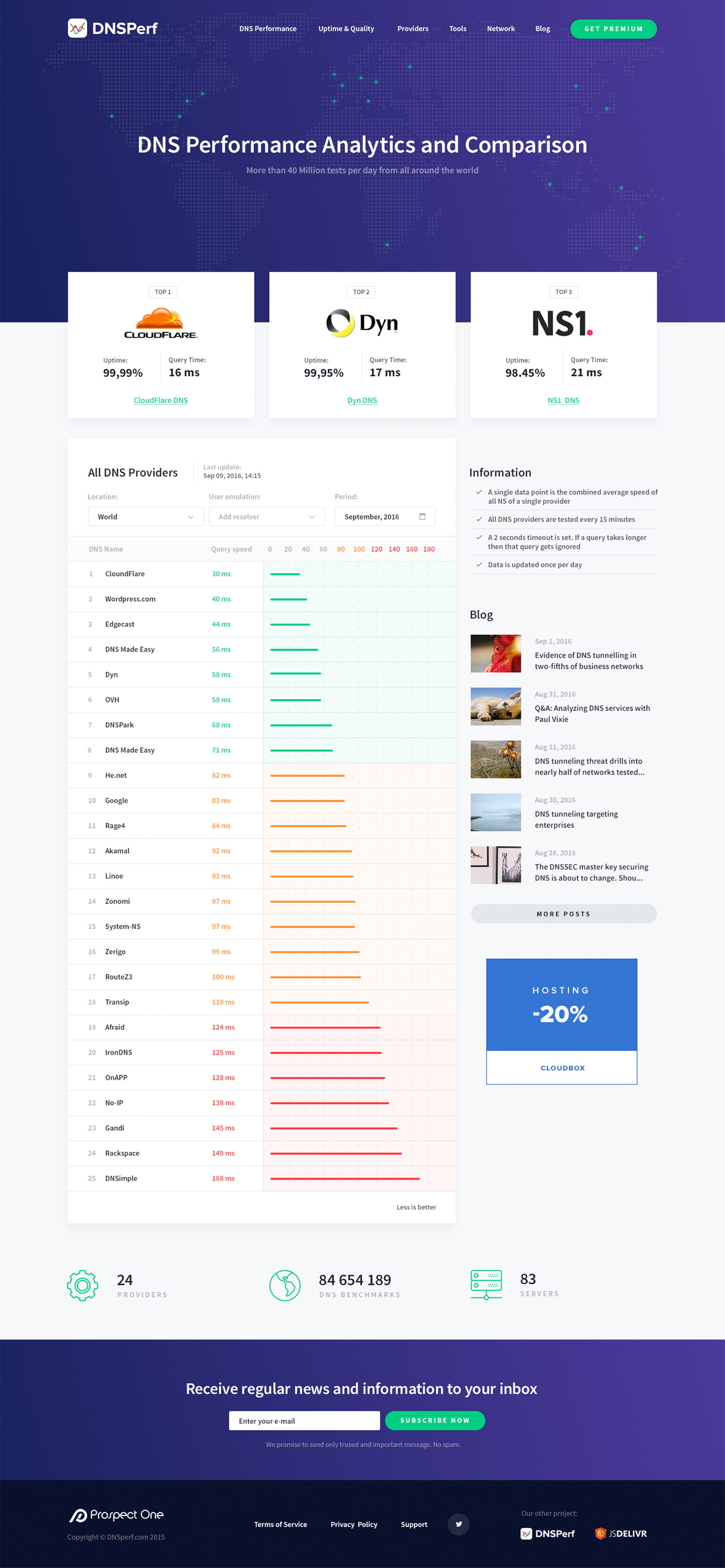 Owned and developed by Prospect One. A big and complex project that allows companies to monitor and analyze the performance of DNS providers.
