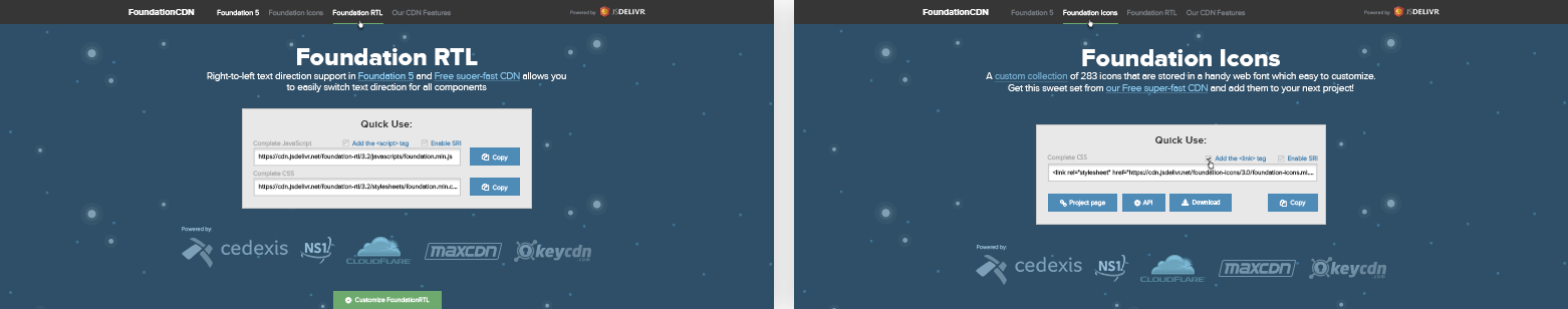 FoundationCDN is a CDN for the Foundation CSS framework powered by jsDelivr.